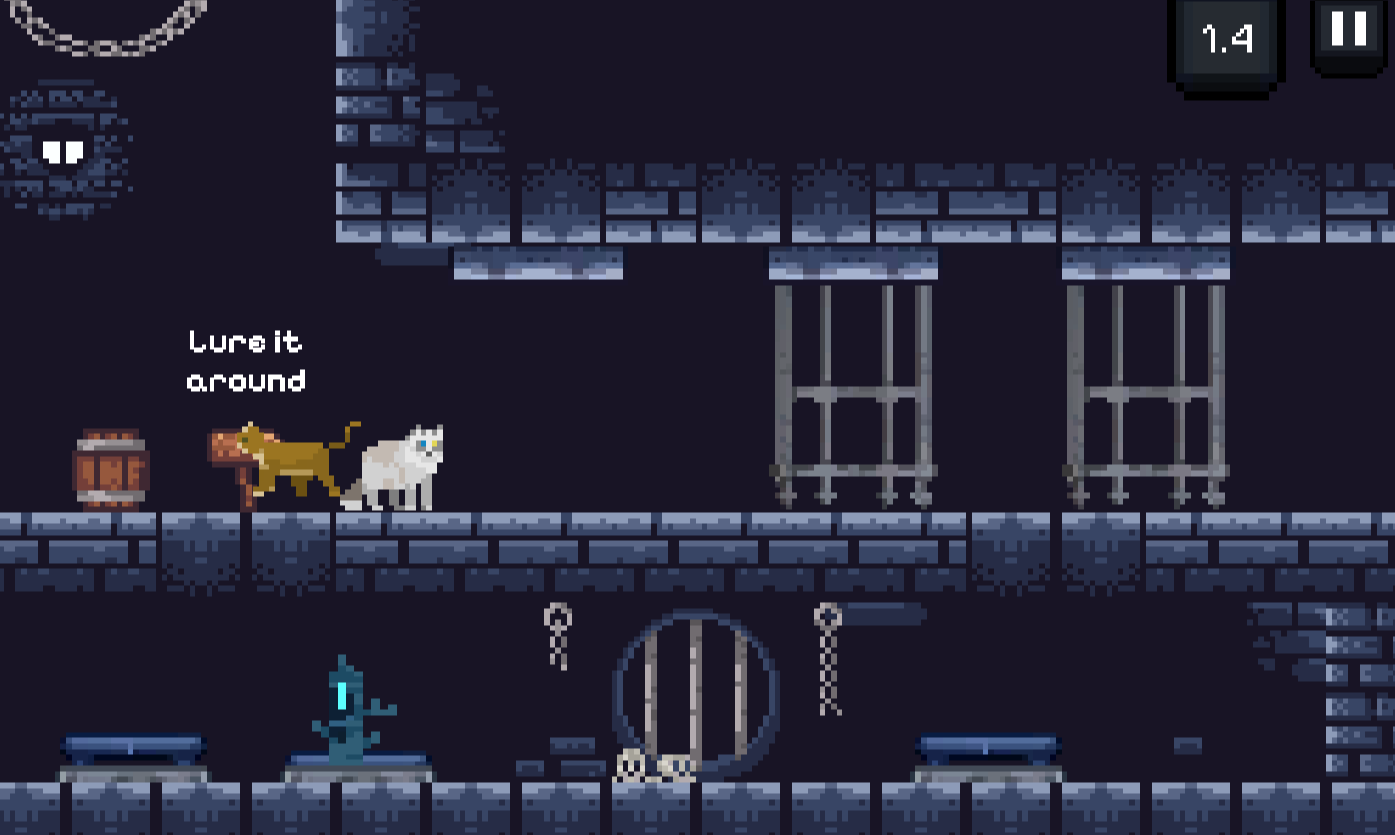 Explore an old dungeon as a cat, and solve puzzles to escape. If something feels impossible, remember: your echo does your past actions in reverse.